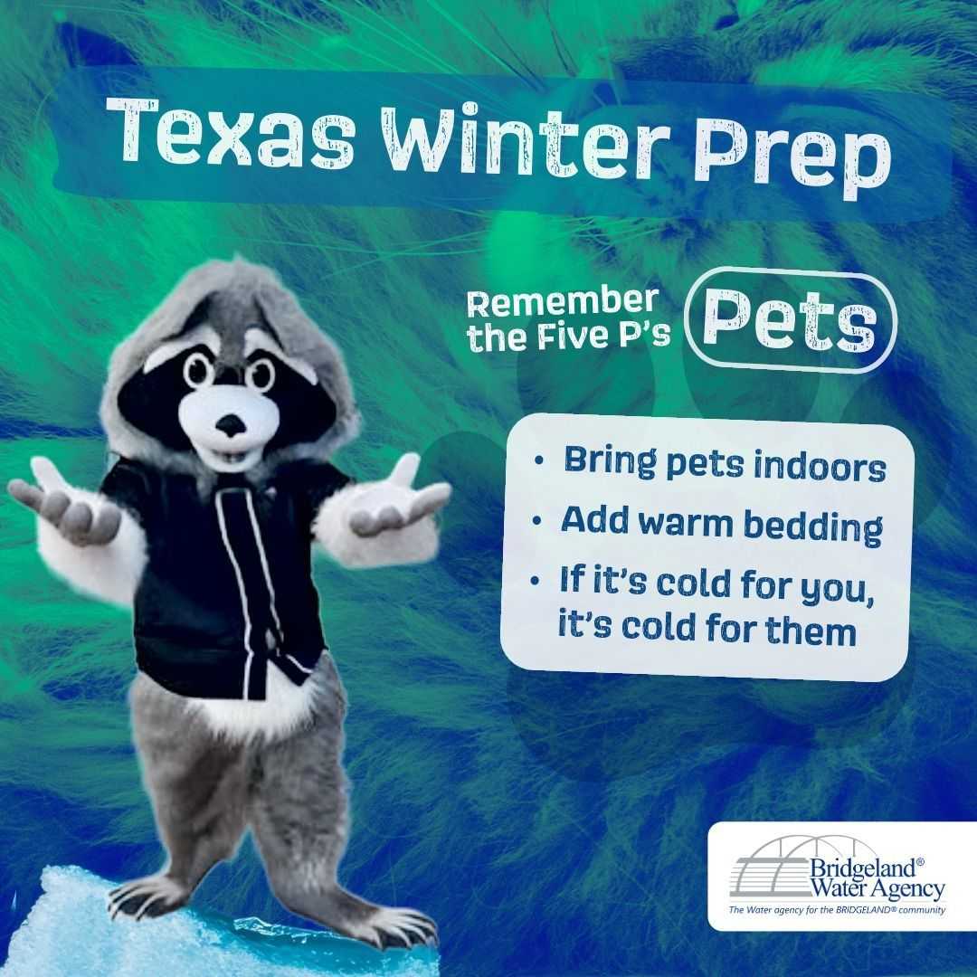 Bring pets indoors or provide warm, dry shelter with access to unfrozen water. Freezing temperatures can be just as dangerous for animals as they are for people.